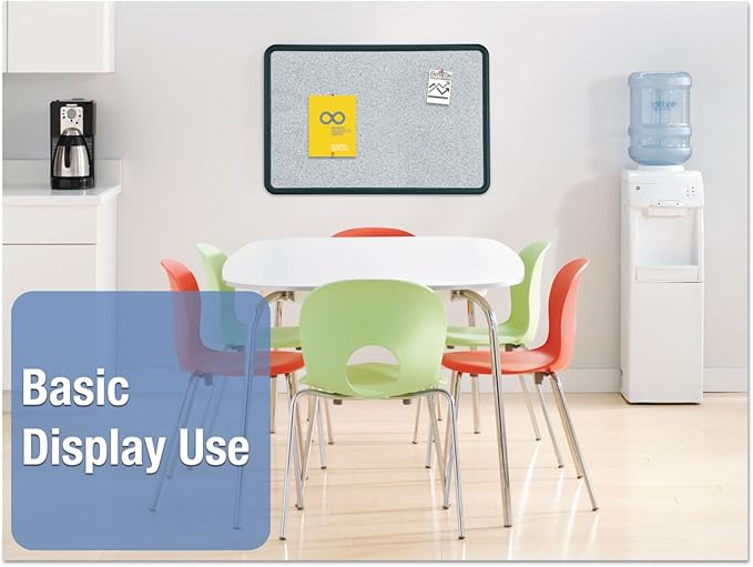 - Durable granite-colored bulletin board surface with matching plastic frame secures documents with push pins