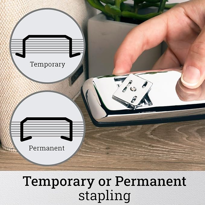 - ICONIC METAL STAPLER – Sleek Chrome stapler with all-metal construction is designed for durability. A specially crafted inner rail delivers jam-resistant, accurate stapling you can count on.