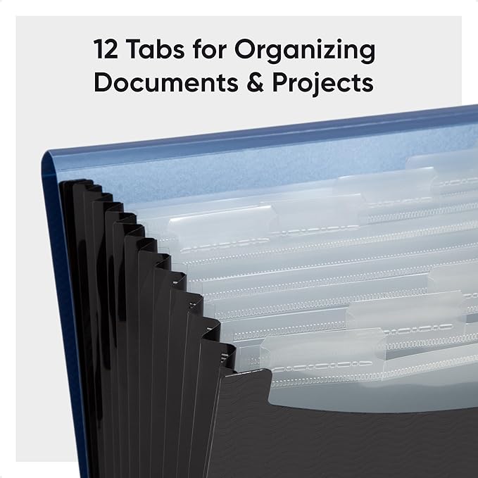 Smead Poly Frequency Expandable File Folders Letter Size, 12 Pockets, Flap & Cord Closure, Blue/Black (70863)