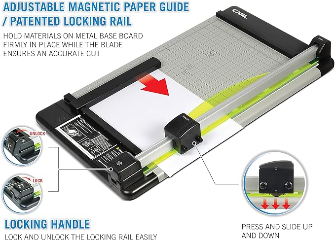 - The patented locking rail mechanism hold paper firmly in place while the Premium carbide blade ensures an accurate cut.