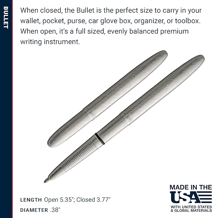 - A Pen Designed to Last: The Brushed Chrome Bullet Pen is a timeless, classic ballpoint pen and compact enough to carry in your wallet, pocket, purse, car glove box, organizer, or toolbox