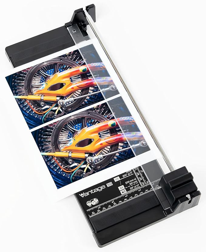 Dahle Vantage 50 Rotary Trimmer, 12" Cut Length, 5 Sheet Capacity, Self-Sharpening, Automatic Clamp, German Engineered Paper Cutter