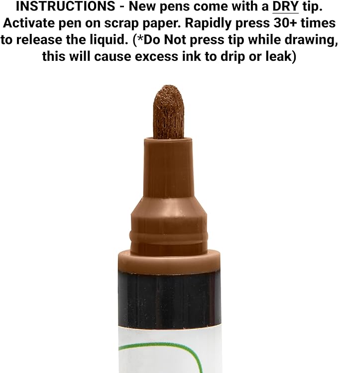 - INSTRUCTIONS TO START- Activate new pen on a scrap piece of paper. Gently press 20-30 times to release the liquid inside. (Do Not pump tip while writing, this will cause excess ink to drip or leak.)