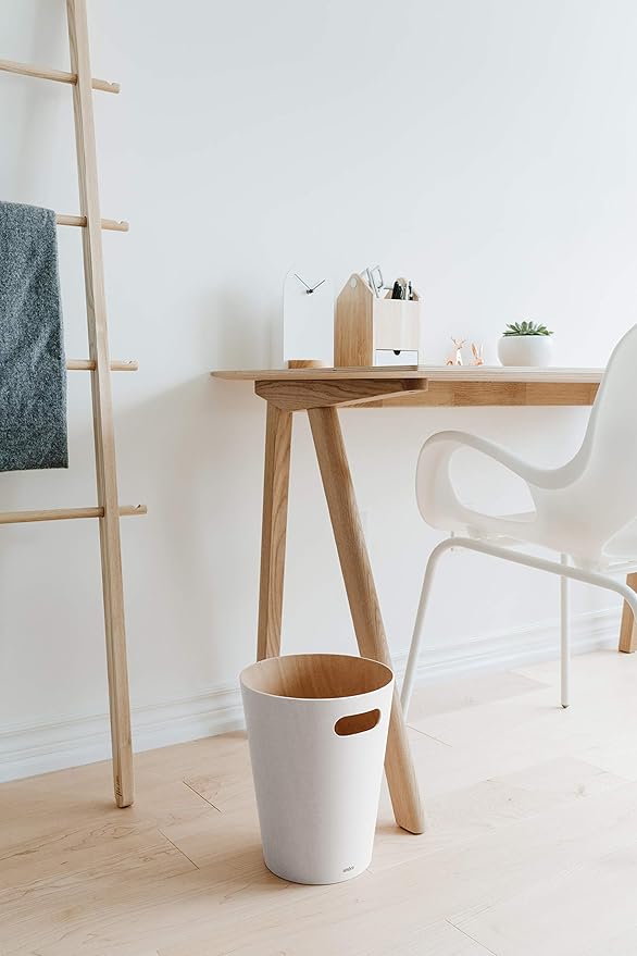 Umbra Woodrow, 2 Gallon Modern Wooden Trash Can Wastebasket or Recycling Bin for Home or Office, White