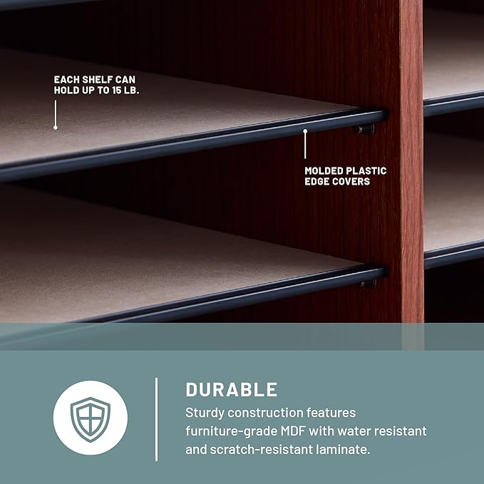 Safco Literature Organizer, 12 Compartments, Office and Classroom Mailbox with Adjustable Shelves, Wood Paper and Mail Sorter, Cherry
