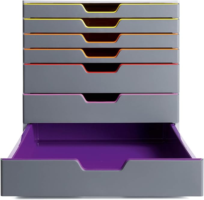 Durable Varicolor 7 Drawer Unit - Gray Desktop Drawer Set with 7 Color Coded Draws - Letter to Folio Size Files - Perfect for Storing Documents and Paper Work