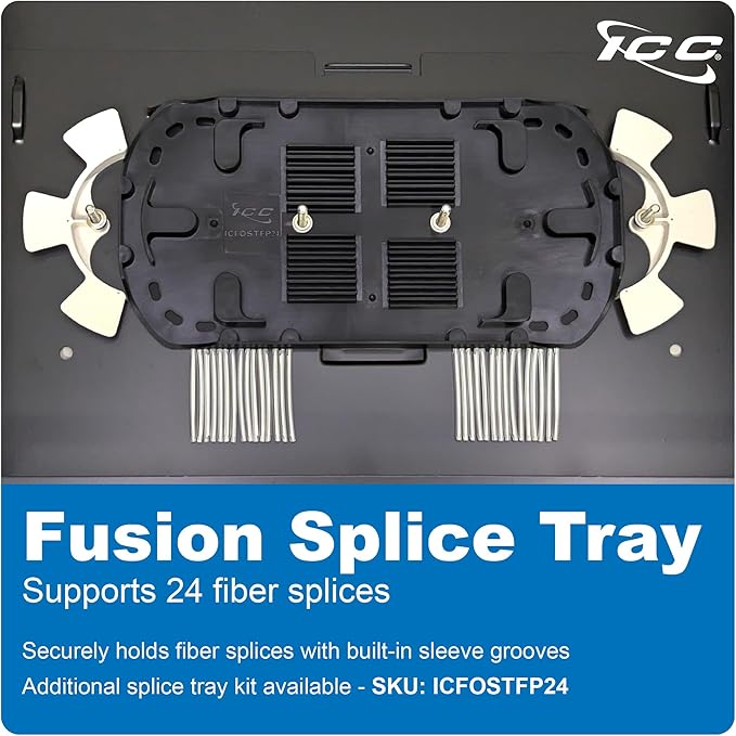 - INCLUDES 24-FIBER SPLICE TRAY: Comes with one 24-fiber splice tray (SKU: ICFOSTFP24) packaged with other enclosure components. Supports up to two splice trays for expansion. Additional trays sold separately.