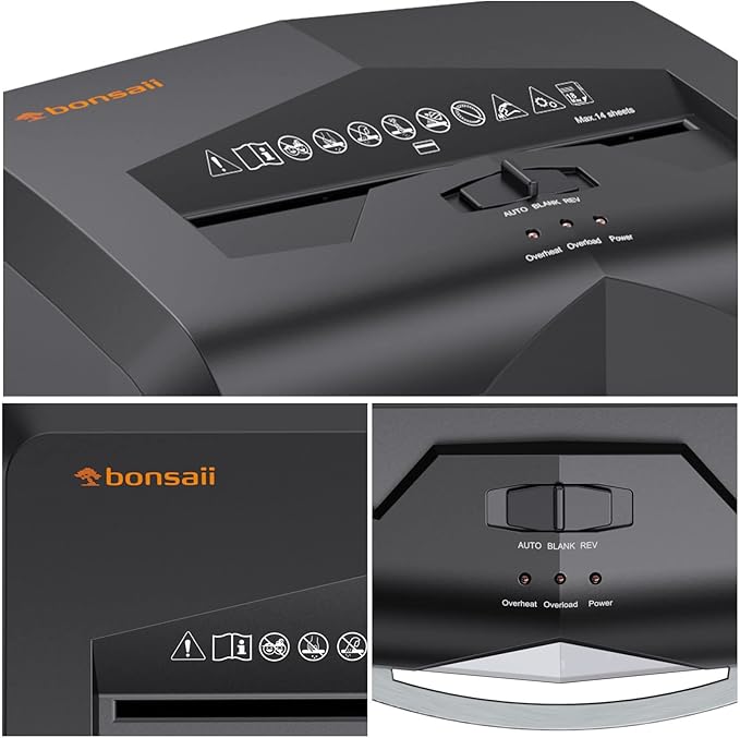 - 60-Minute Shredding: Bonsaii heavy duty paper shredder continous running time up to 60 minutes without stopping withh an advanced cooling system and patented technology. Professional paper shredder for office
