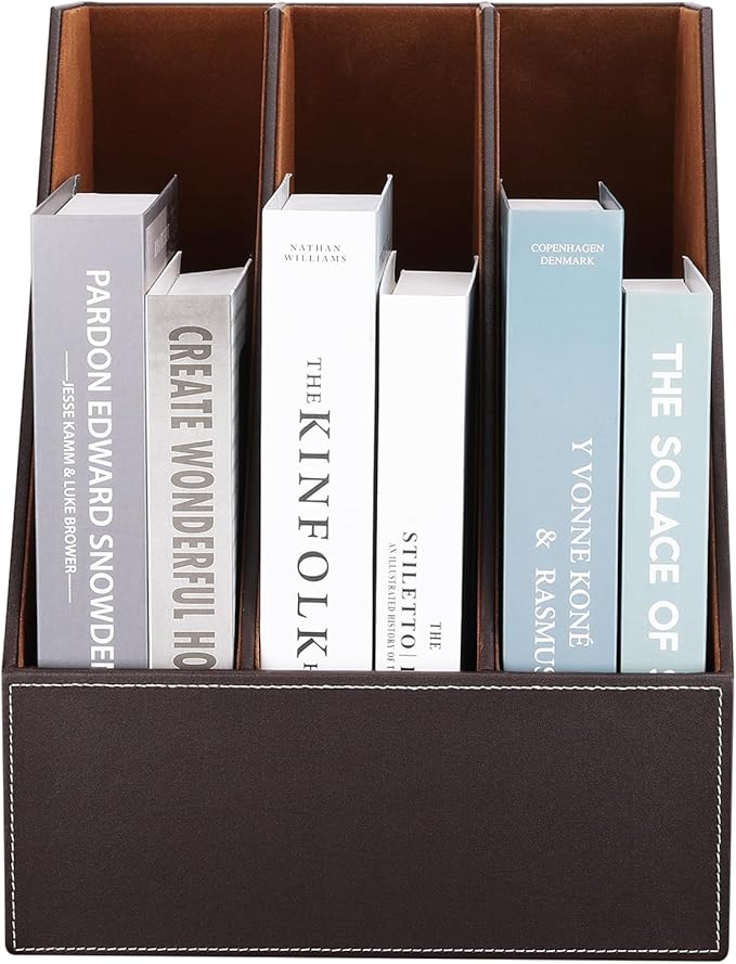 KINGFOM Desktop Wooden Leatherette Magazine File Holder-Organizer-3 Compartment Stand Rack-Papers Storage Box (brown)