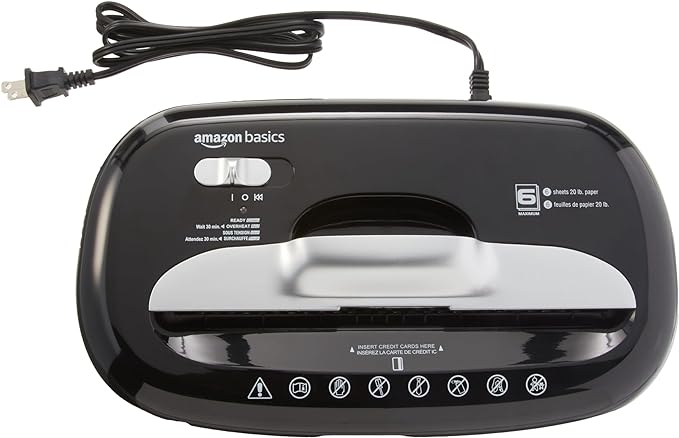Amazon Basics 6 Sheet High Security Micro Cut Paper and Credit Card Home Office Shredder, Black