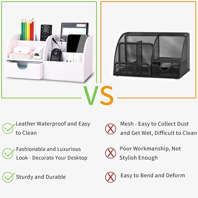 - ▶ STYLISH DESIGN AND STURDY CONSTRUCTION: The desk organizer surface is made of high quality PU leather with MDF struction, and designed with stitched detailing.