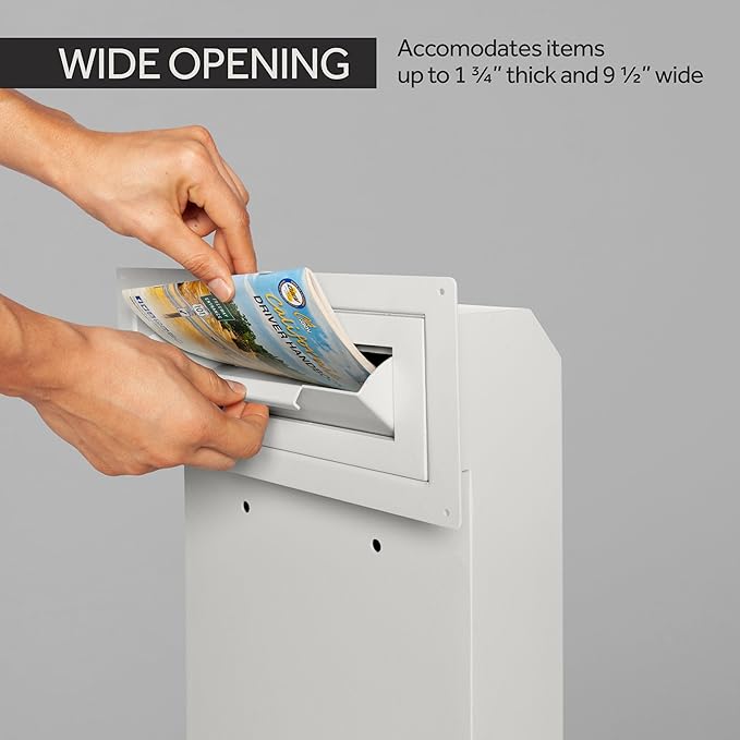 - LARGE CAPACITY - Features a precisely designed drop slot opening that can clear items up to 9-1/2" wide by 1-3/4β thick. With a generous interior capacity of 505 cubic inches, this secure drop box provides plenty of space perfect for both residential and commercial use.