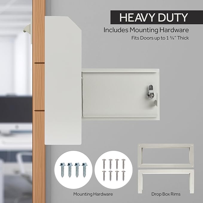 - SECURE β Designed with security in mind, this wall-mounted drop box features a reinforced double steel door, a durable piano hinge, and two internal metal baffles to prevent tampering, prying, or fishing. The tubular lock and key system offers additional protection against unauthorized access.