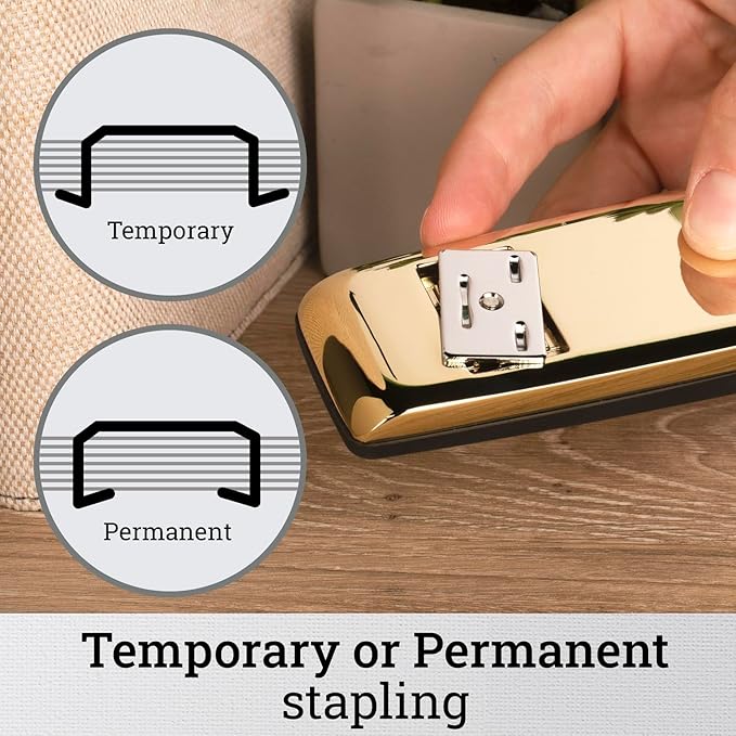 - ICONIC METAL STAPLER – Gold Metallic stapler with all-metal construction is designed for durability. A specially crafted inner rail delivers jam-resistant, accurate stapling you can count on.