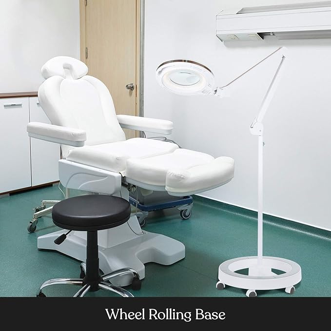- Magnifying Floor Lamp with 6 Wheels: Multiple testimonials from those with macular degeneration and from aging customers show that older eyes need extra light & magnification to be able to see details and full contrast. The 6 wheels roll easily, making the Brightech floor lamp perfect for spas and salons, estheticians, dermatologists, beauticians, jewelers, tattoo artists, dentists, etc. Facials, lash extensions and other treatments are a cinch.
