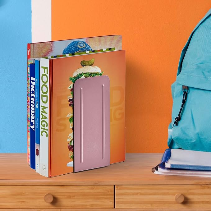 Acrimet Metal Bookends, Jumbo Size 9" H x 4" W x 4-1/2" D, Non-Skid Book Stand for Shelves, Heavy Duty Book Stopper, Pink, 1 Pair