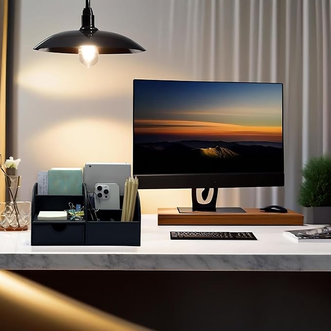 - Efficient Organization: Keep your desk and workspace tidy and organized with this desk organizer that has multiple compartments to store your pens, pencils, phone, remote control, envelopes, cosmetics, scissors and other home or office supplies. With a designated place for everything, you can keep track of all office supplies, and avoid the frustration of misplacing items