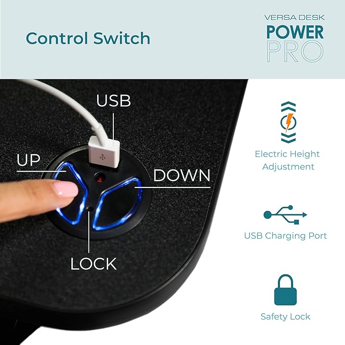 - ✔️ELECTRIC STANDING DESK CONVERTER - VERSADESK desk converter is covered by US Patent No; US 10413055 B2; Holds 80 lbs; Converts a traditional computer desk to a sit to stand desk; Felts are attached to the base to protect your desk from scratching Fast and quiet desk height adjustment; Fully electric power without stopping points; Easily achieve the ergonomic height from 5" to 20” from table surface, ideal for home office, office working station; Monitor and monitor arm not included