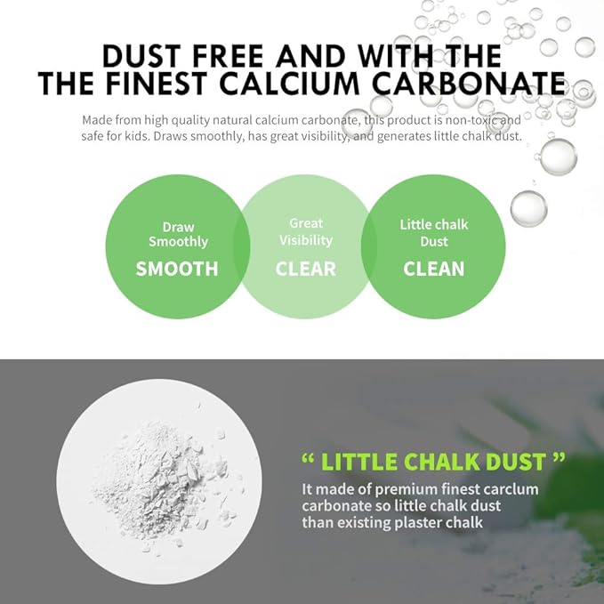 - NO MISTAKES: Our chalks erase easily leaving little to no residue on the chalkboard when removed. Chalk generates little dust and fallout minimizing chances of smudging and messes when writing or drawing