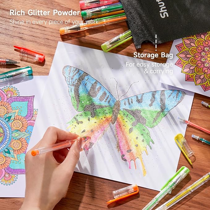 - 80 GLITTER PACK: Shuttle Art 40 Colors Glitter Gel Pens contains 40 INDIVIDUAL glitter + neon glitter colors, plus 40 matched refills. Enjoy the fun of coloring! Each pen enjoys a unique color, which brings you much more fun in life.