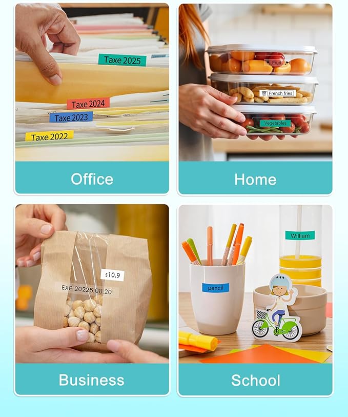 - Multi-applications: Compatible with P touch label tape can be uesd indoors and outdoor such as: home, office, factory, school, library, laboratory and many other places. It can be used on files, jars, freezers, microwaves, dishwashers, cabinets, control panels, buttons, cups, gifts, books, pens and other items.