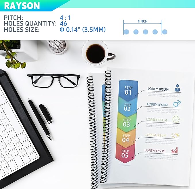 - Compatible with 4:1 pitch spiral binding coils and 46-hole for binding & punching letter size, A4 size or A5 size papers.