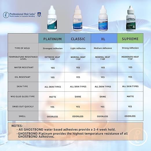 - LESS PRODUCT APPLICATION REQUIRED: The GHOSTBOND Platinum hair glue is specially designed for those with oily skin and scalps, heavy perspiration and those in climates with high moisture and humidity. It requires less product compared to other GHOSTBOND adhesives, making it a cost-effective option for those who use the product frequently.