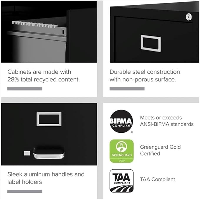 Scranton & Co 4 Drawer Metal Vertical File Cabinet with Lock, 22" Deep, Letter Size, Home/Office, Preassembled, Commercial Grade, Black Finish