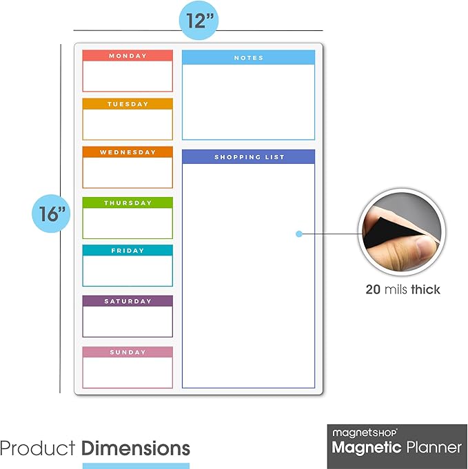 Magnetic Dry Erase White Board Planner for Fridge | Apartment Essentials and Home Organization Must Have | Family Planning, Grocery List, Whiteboard Calendar, Chore Chart | Multi-Color 12" x 16"