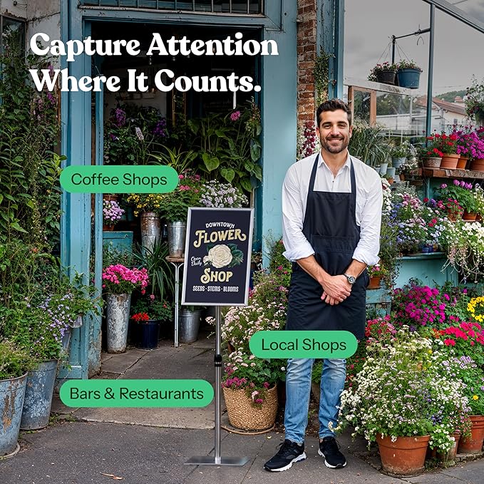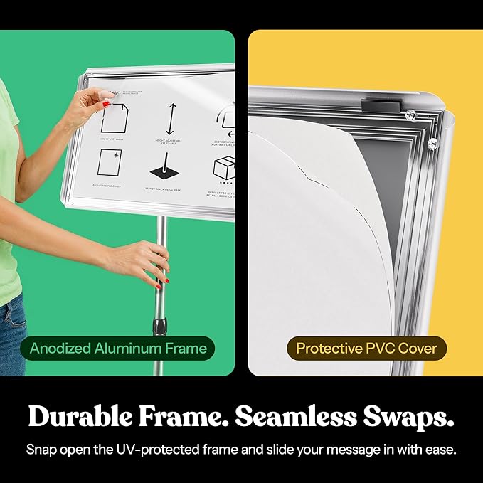 - Adjustable View : The Sign Frame Height is Between 31.5” and 48” Tall, can be revolved in horizontal or vertical as you like.
