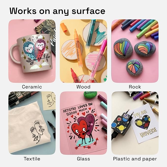- Multi-Purpose: Enjoy creating art projects with Artistro multicolor pens on a variety of surfaces like rocks, stone, metal, pottery, treated smooth wood, plastic, terra-cotta, polymer clay, and more!