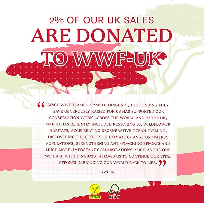 - SUSTAINABLY SOURCED, ENVIRONMENTALLY CONSCIOUS: Made from recyclable materials and FSC certified paper, our notebooks are Vegan Certified. Dingbats* Notebooks Ltd donates 2% of UK sales to WWF-UK, supporting environmental conservation.