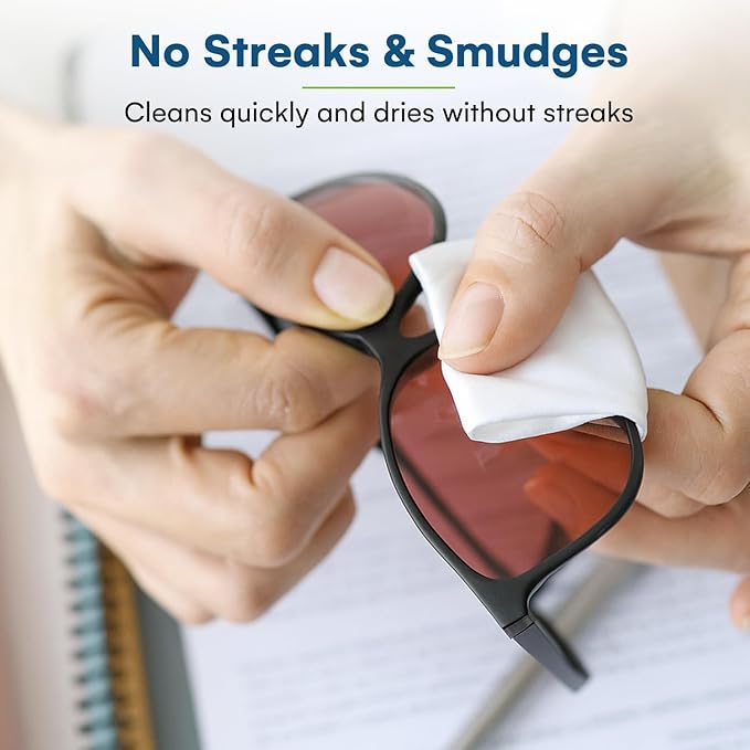 - No Streak Formula: Cleans lenses and eye glasses without leaving streaks or residue; lens wipes for eyeglasses and lenses dries quickly for clear vision; safe for coated lenses