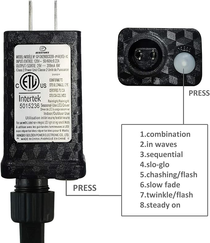 - Special Feature : 8 Lighting Effect, Low Voltage Output, Memory Function