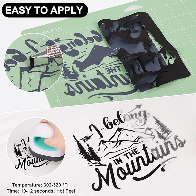 - ✂️EASY TO APPLY: Just use craft cutter and a home iron to get the job done. Apply for approximately 10-12 seconds at 302-320 °F (150-160 °C) and about 10 LBS of pressure. Be sure to cold peel.