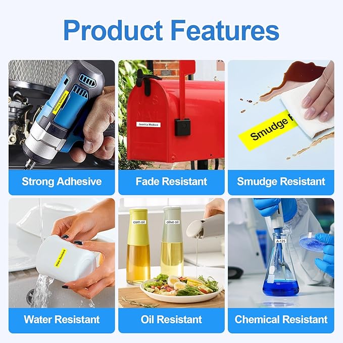- Easy to peel: The label maker tape cassette has a unique split back, it makes the laminated tape easy to peel and apply. It won’t leave a sticky residue when they are removed, no gum left after peel.