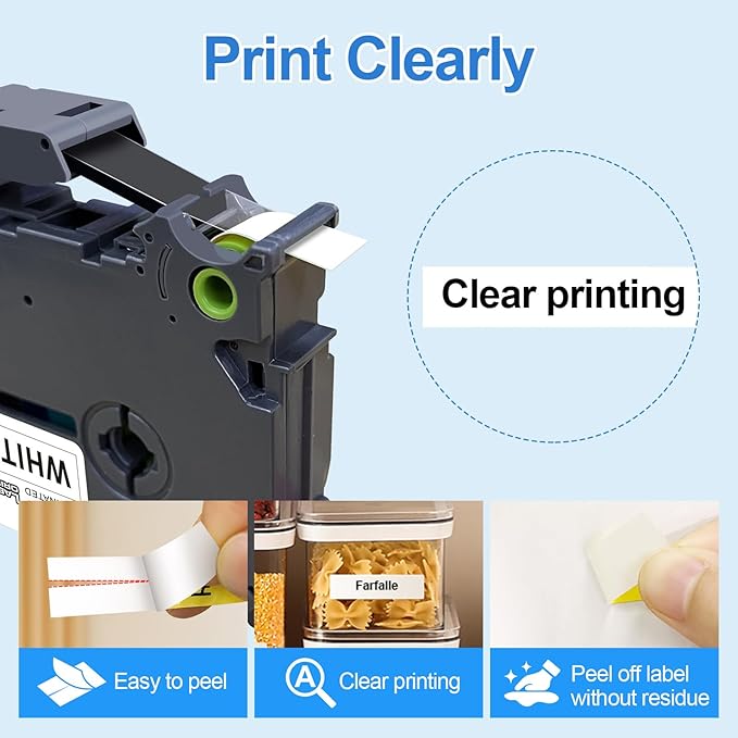 - Easy to Peel: P-touch clear tape has a unique split back,it makes the laminated tape easy to peel and apply.It won’t leave a sticky residue when they are removed, no gum left after peel