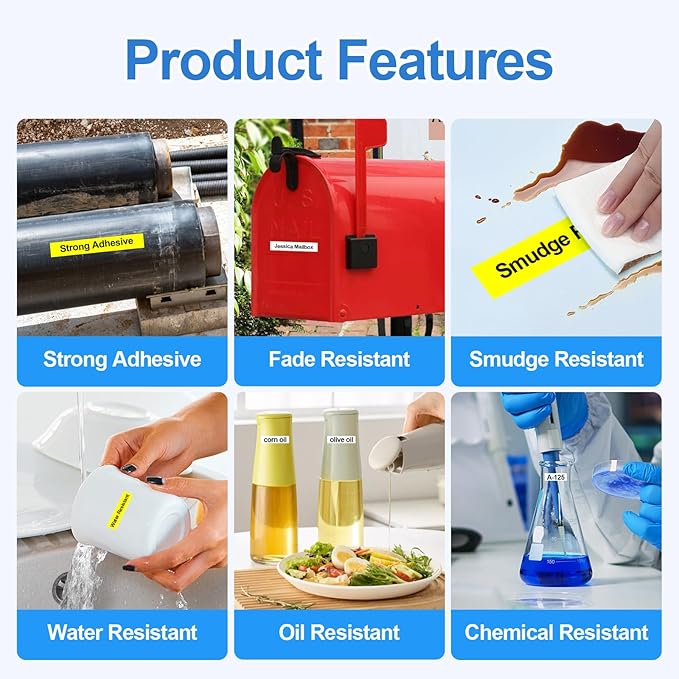 - Features: P-touch label tape clear.It is laminated, durable,strong adhesive, anti-abrasion ,chemical resistant,withstands temperature ,fade and water resistant even in harsh conditions.It won't smudge or smear ,suitable for indoor and outdoor use