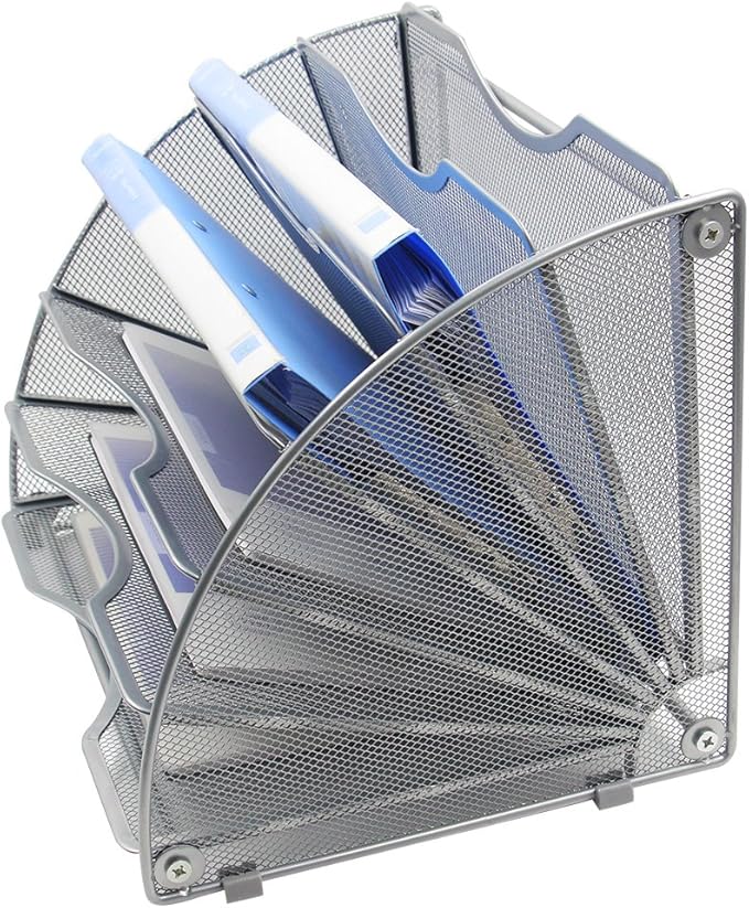 - Fan-Shaped Design: Crafted with durable metal mesh and an powder-coated finish, this organizer combines modern aesthetics with sustainability. Its unique fan-shaped structure optimizes vertical desk space while blending seamlessly into offices, homes, or classrooms.