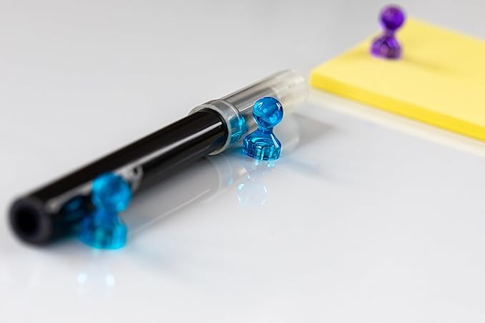 - 7 ASSORTED COLOR – 56 pcs Products4Future colorful magnetic push pins include 8 blue magnets, 8 orange magnets, 8 yellow magnets, 8 green magnets, 8 crystal clear magnets, 8 purple magnets, 8 pink magnets. Perfect for organizing, color coding. Kids will love them!
