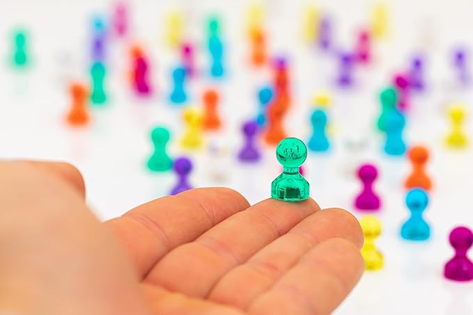 - IDEAL & HANDY SIZE – Decorative magnets with bright color, chess shape design for easy hold. Everything is packed in a unique and functional clear plastic container, perfect for gifts. Each refrigerator magnet is 0.43 inch in diameter by 0.66 inch in height. These tiny push pin magnets won’t cover up exact things you want to display.