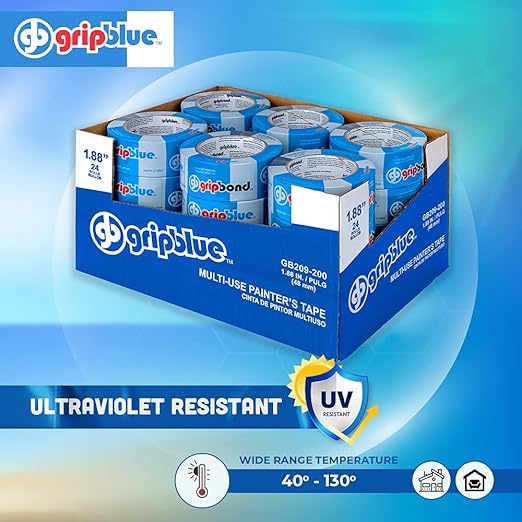 - ONE TAPE, MANY USES: GripBlue Blue Tape sticks to walls, wood, metal, and more. Ideal for painting, crafting, decorating, or kitchen touch-ups. A reliable choice for every project, every surface.