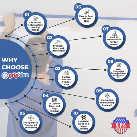 - SHARP LINES, NO BLEED: Whether you’re painting walls or wider trims, GripBlue helps you get clean, straight paint lines every time. No smudges, no fuss – just pro-looking results.