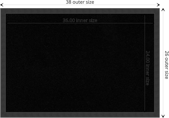 - DIMENSIONS: The overall size of this framed corkboard measures 38 in. x 26 in., including the frame. Its functional cork board area measures 36 in. x 24 in.