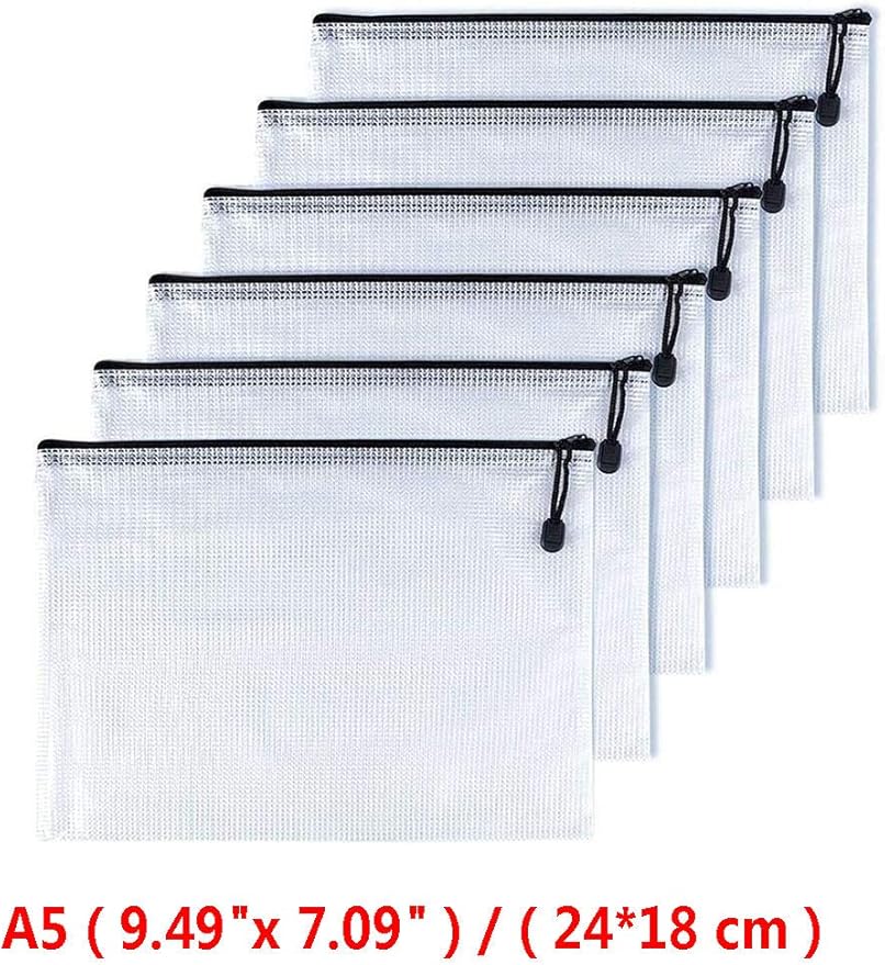 - Package Contains- A5(7"x 9.5" *12Pcs) File Bag (black).You will get a set of 12 Packs plastic zipper pouches for the most paper size of prints or smaller document storage. It can help you organize your miscellaneous items to meet your daily life and work.