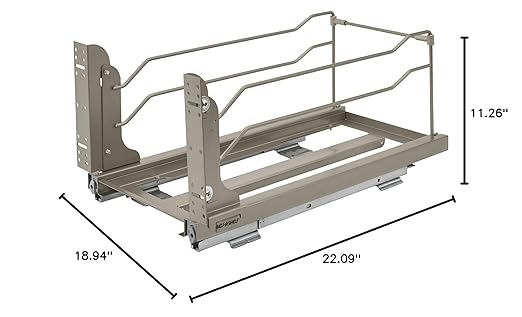 - Specifications: Dimensions (W x D x H): 11.01" x 22.09" x 18.94"; Weight: 22 pounds; This pullout trash system is designed for a minimum cabinet opening width of 11.5"