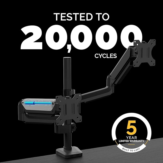 - SUPPORTS: Dual monitors up to 27" (stacking) and 32"(side by side) and 17.6 lbs each, perfect for home, office, or gaming setups