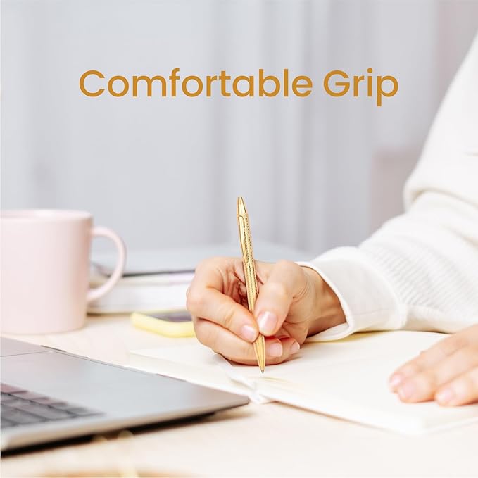 - Premium Gold Pen: Elevate your style with the black ink pens featuring a sleek metal body in a stunning gold finish; Perfect for women, flight attendants, police officers as uniform pen, or wedding guest books as guest book pen, gold office supplies