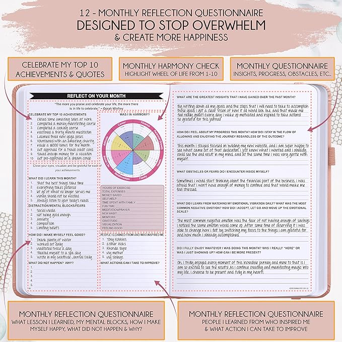- REDUCE OVERWHELM, STRESS AND FIX PROCRASTINATION - Follow a unique 8 step system that will help you bring back harmony, clarity, and peace in your life while achieving your goals. This planner is perfect for birthday gift, mother's day, anniversary gifts, and christmas gifts.