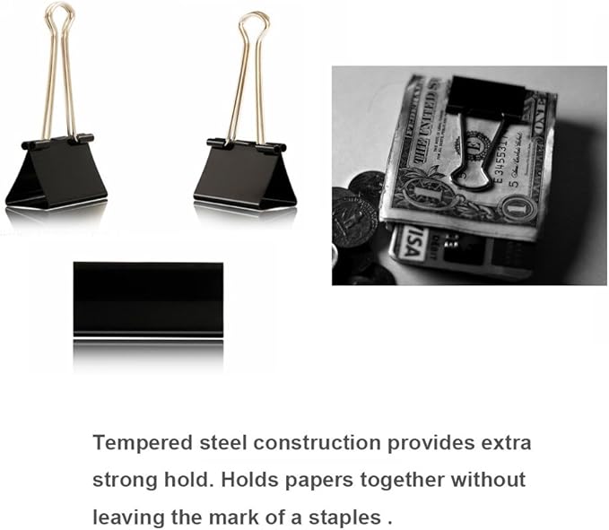 - ADVANTAGE - Spring-tight binder clip keeps files bound together preventing papers from slipping or pulling out, tempered steel construction provides extra strong hold. Holds papers together without leaving the mark of a staple